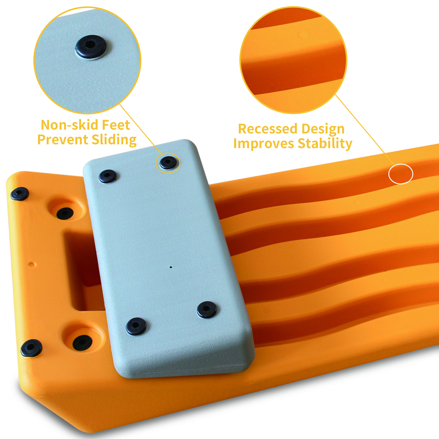 Non-slip design: The textured surface is non-slip and shock-absorbing, which means you can stay stable through each set of steps. Each riser is also fitted with a non-slip rubber foot to prevent it from sliding when moving and scraping the floor.