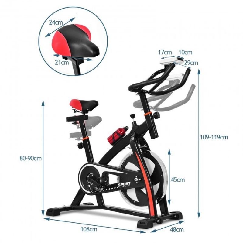 The exercise bike provides electrodeless speed change, optimally weighted flywheel, and ultra-comfortable sport saddle, which can be fully adjusted. There's no need to hit the gym or pay for those expensive cycling classes anymore. With this adjustable resistance exercise bike, you will definitely get a great workout. Effective calorie consumption and durable frames are the main advantages of this exercise bike. In addition, the bike is equipped with an LED display that shows the scan, time, speed, distance, odometer, and heart rate. With a simple appearance, this stationary bike can help keep you healthy and fit.