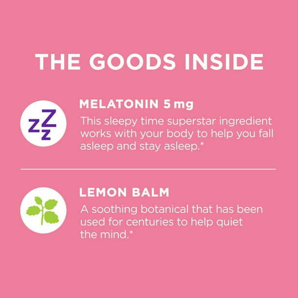 Sleep seekers, rejoice! These delicious quick-dissolving sleep aid tablets are packed with an extra boost of 5 mg Melatonin that helps promote restful sleep. Just pop one in your mouth and enjoy the strawberry goodness.* Non-habit forming and 100% drug-free. Doesn’t that sound dreamy?OLLY Extra Strength Sleep Fast Dissolve Tablets are made with an expert blend of Melatonin and Lemon Balm. Melatonin works with your body to help you fall asleep and stay asleep; Lemon Balm is a soothing botanical that’s been used for centuries to help quiet the mind. They’re sugar free, vegan and made with zero synthetic colors or flavors. Adults, take one 30 minutes before bedtime to enjoy restful sleep.*At OLLY, we create delightful vitamins and supplements with real deal benefits that help you live Happy Inside Out.**These statements have not been evaluated by the Food and Drug Administration. This product is not intended to diagnose, treat, cure or prevent any disease.For occasional sleeplessness.CAUTION: Melatonin may cause drowsiness or sleepiness; do not take while driving, operating machinery, or engaging in any activity that requires alertness. This product is not intended to treat insomnia or other sleep disorders.