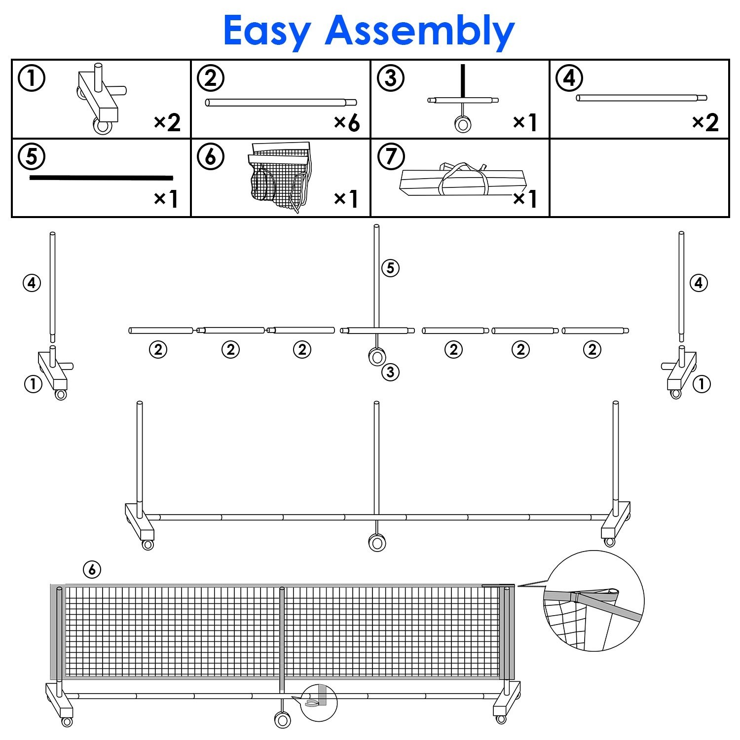 *Easy To Assemble*:Come with all accessories and assembly guide,you just need to connect all tubes,brackets and net in an open space. Quick installation within 5 minutes with no tools needed.