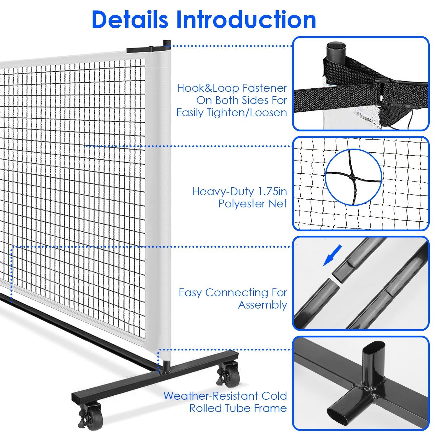 Portable Pickleball Net 22ft Regulation Size Net Pickle Ball Net System with Lockable Wheels Carrying Bag for Driveway Backyard