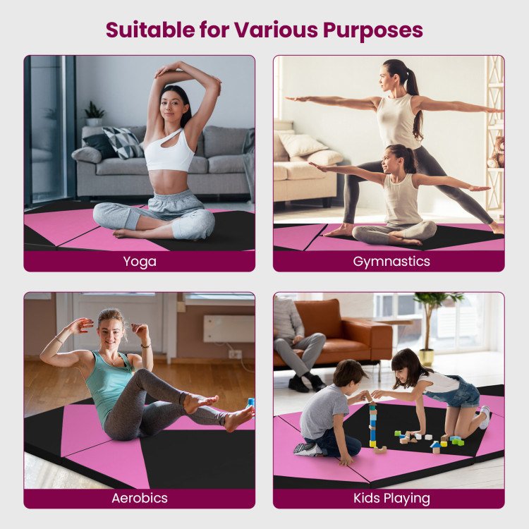 5.Space-Saving Design: This gymnastics mat features a foldable 4-panel design that allows for easy storage and space-saving convenience. Whether you're a professional gymnast, athlete, or fitness enthusiast, this versatile mat is perfect for various exercises, stretches, and routines.