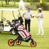 2.Sturdy Aluminum Frame: This collapsible golf cart is built with a super strong, lightweight, and sturdy aluminum tube that offers long term service. The wide body design with textured anti-slippery grip allows effortless pushing. Also, the high elastic strap can fix any size of golf bag and golf clubs in place for enhanced safety.