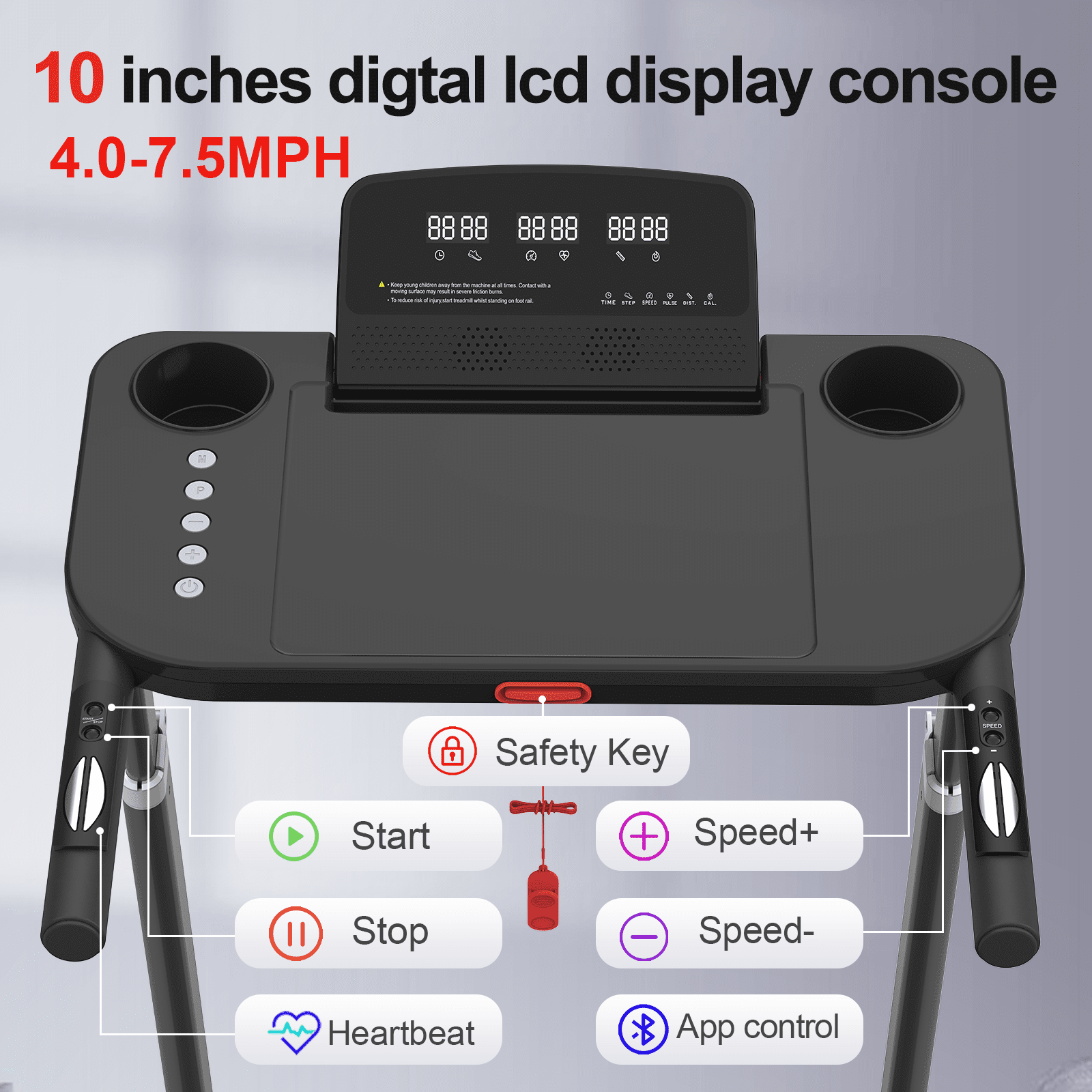 3.[Multi-Function LCD Display & Bluetooth Music ]Built-in multi-function LED display tracks your performance including time, speed, distance, and calories for better tracking and more efficient workouts.