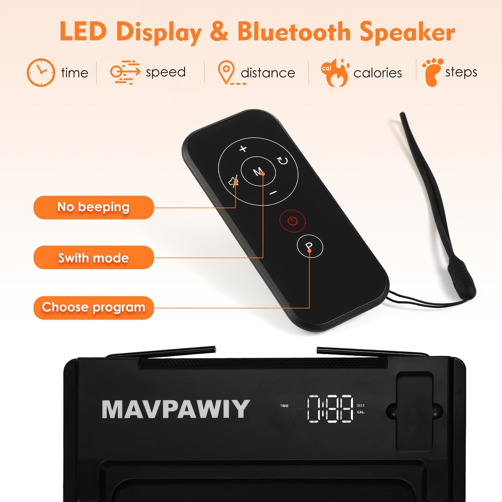 MULTI-FUNCTION DISPLAY: Track speed, time, distance and calories burned on the LED display console. Equipped with a remote control and Remote Control Holder, When not using the remote control, you can put it in the remote control holder.