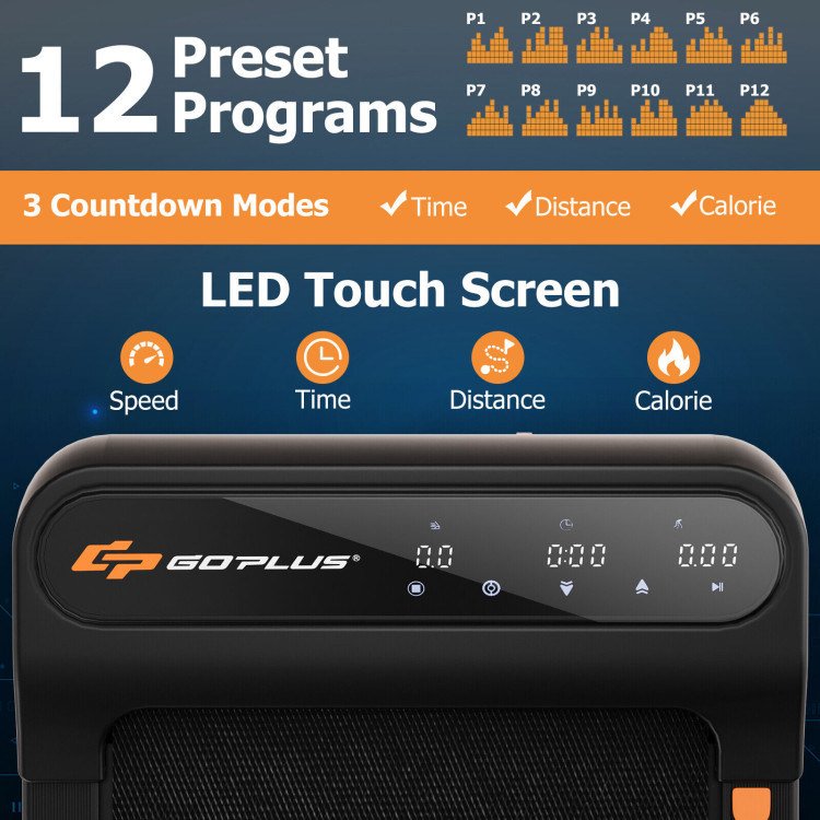 3.0.5-4 MPH Speed Level and 12 Preset Programs: This 2-in-1 under desk treadmill is suitable for walking and jogging thanks to the 0.5-4 MPH speed range. And 12 preset programs and 3 countdown modes (time/distance/calorie) are also included to make exercise more challenging.