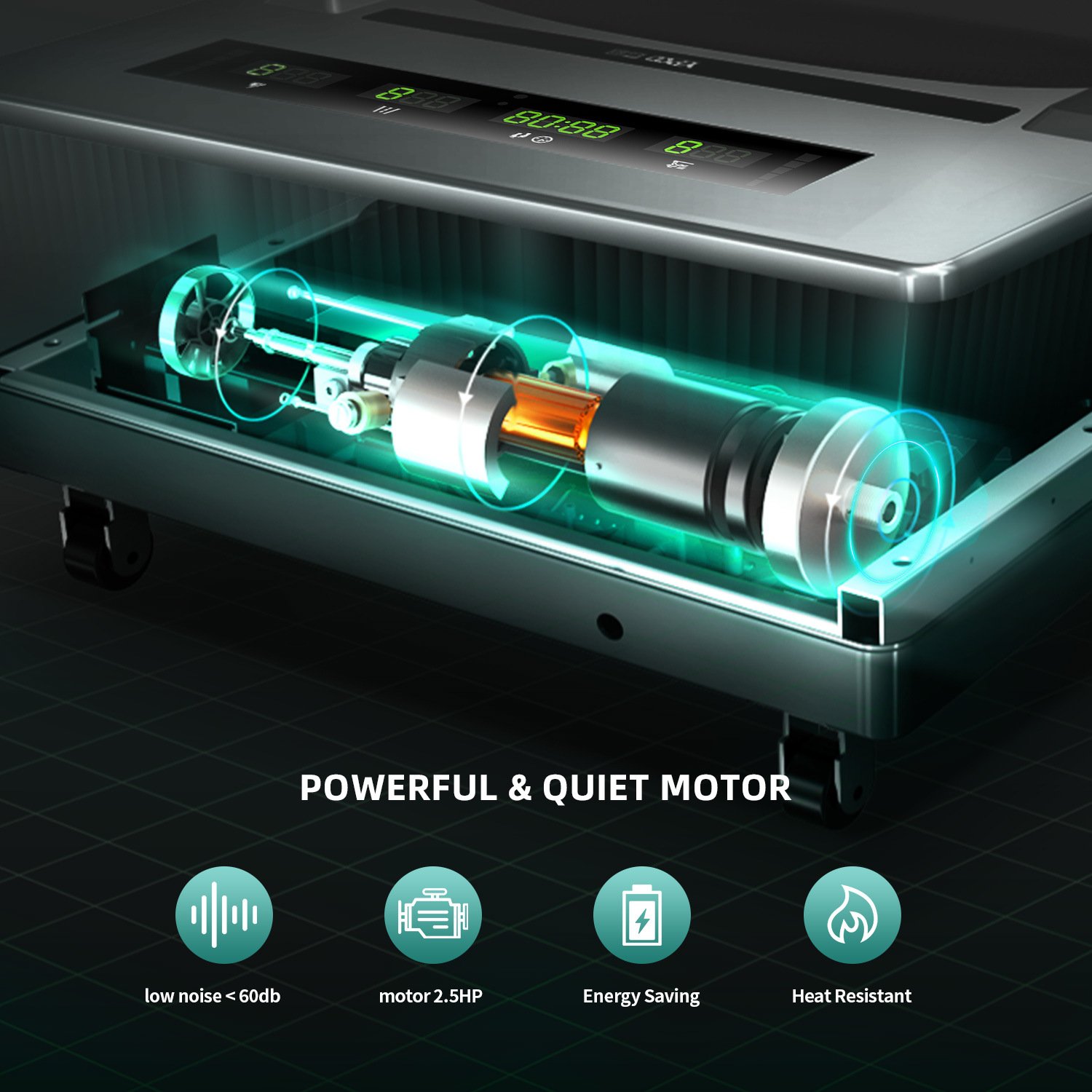 [Powerful and Quite Electric Treadmill]Shock absorption and noise reduction design:---Strong high Peak 2.5hp electric motorized DC power motor, silicon structure running board ,7-level soft large running belt,durable steel frame make up the RHYTHM FUN treadmill's AIR shock reduction and noise reduction system.Less noise and safety make your running quiet and comfortable! No matter beginners or seniors!