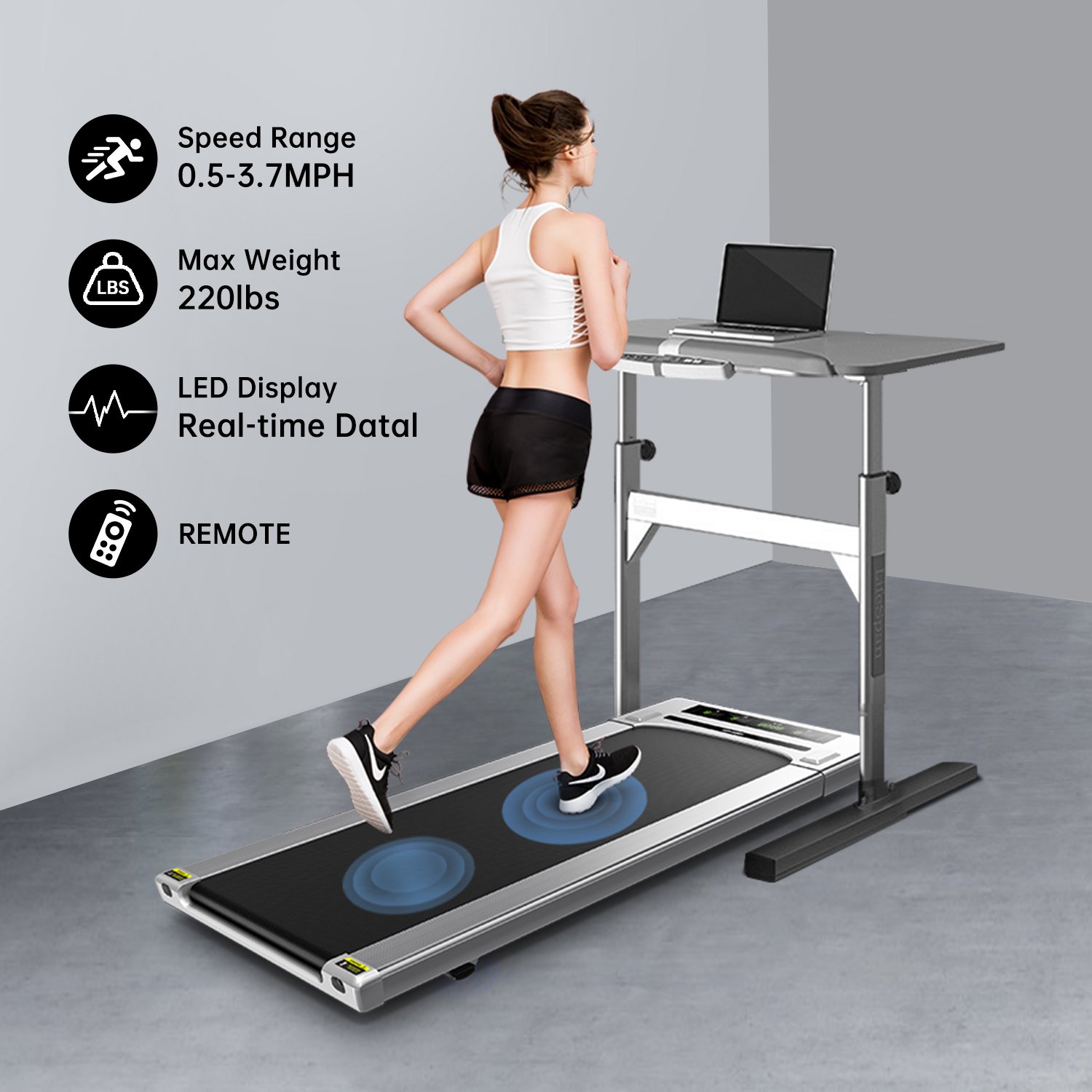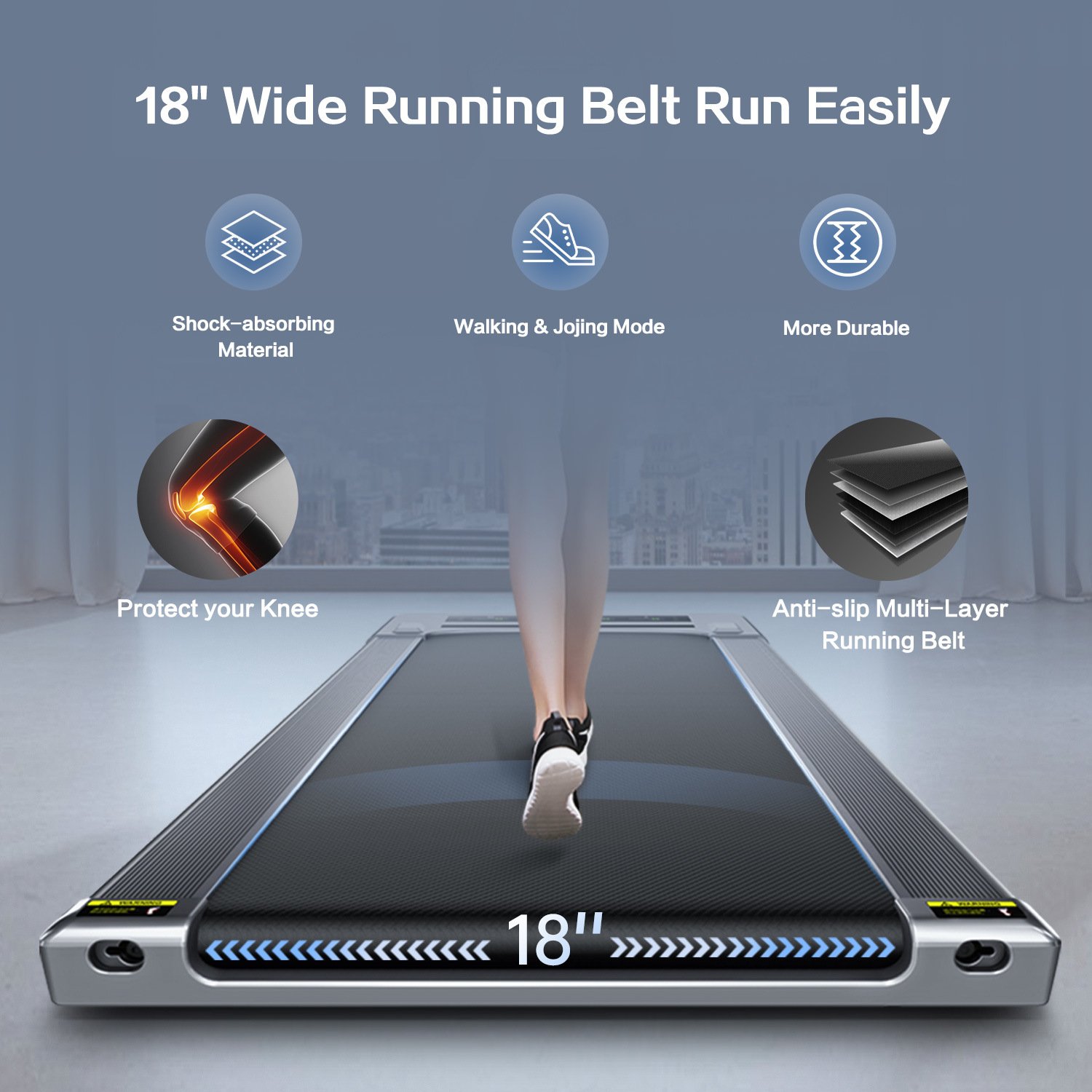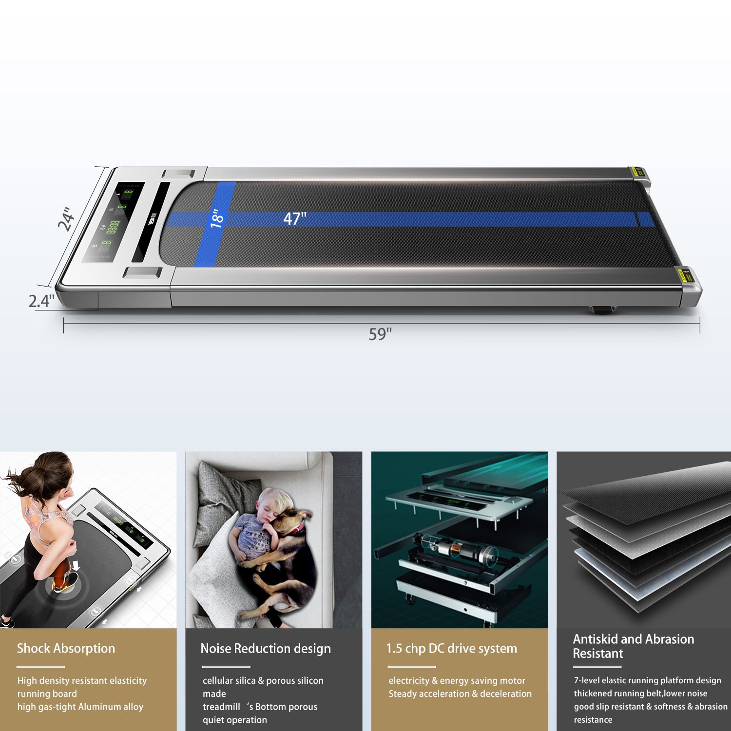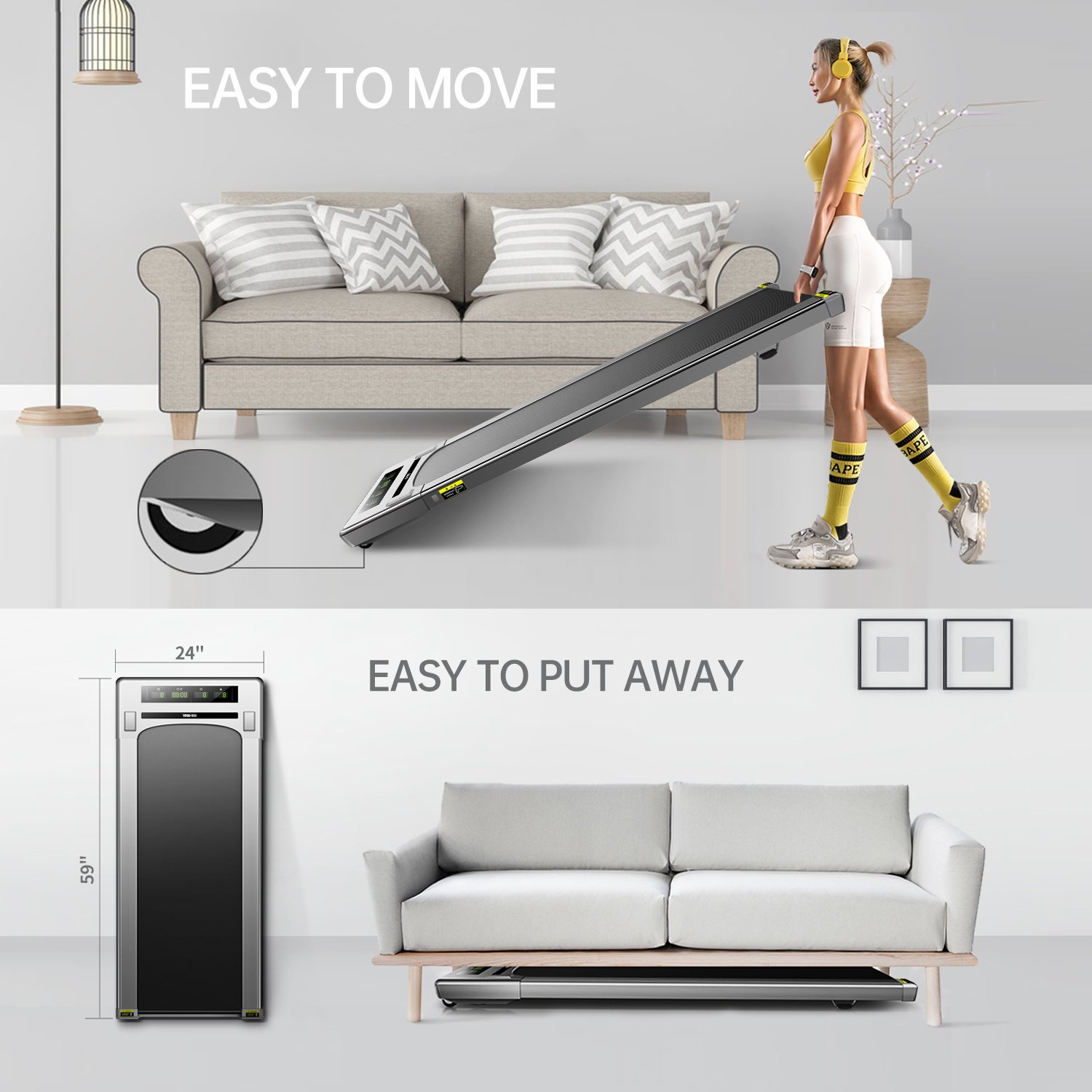 [Under Desk Treadmill for Home Office]Compact, Convenient, Space-saving, and Portable--- Super 2.3"thickness, 78 lbs light weight, only occupy small space in your living room or office. Wheels under the treadmill make it easier to put away after use. Lightweight, portable, and very low & slim profile, portable walking treadmill is great Walker for home walking or jogging fitness exercise.