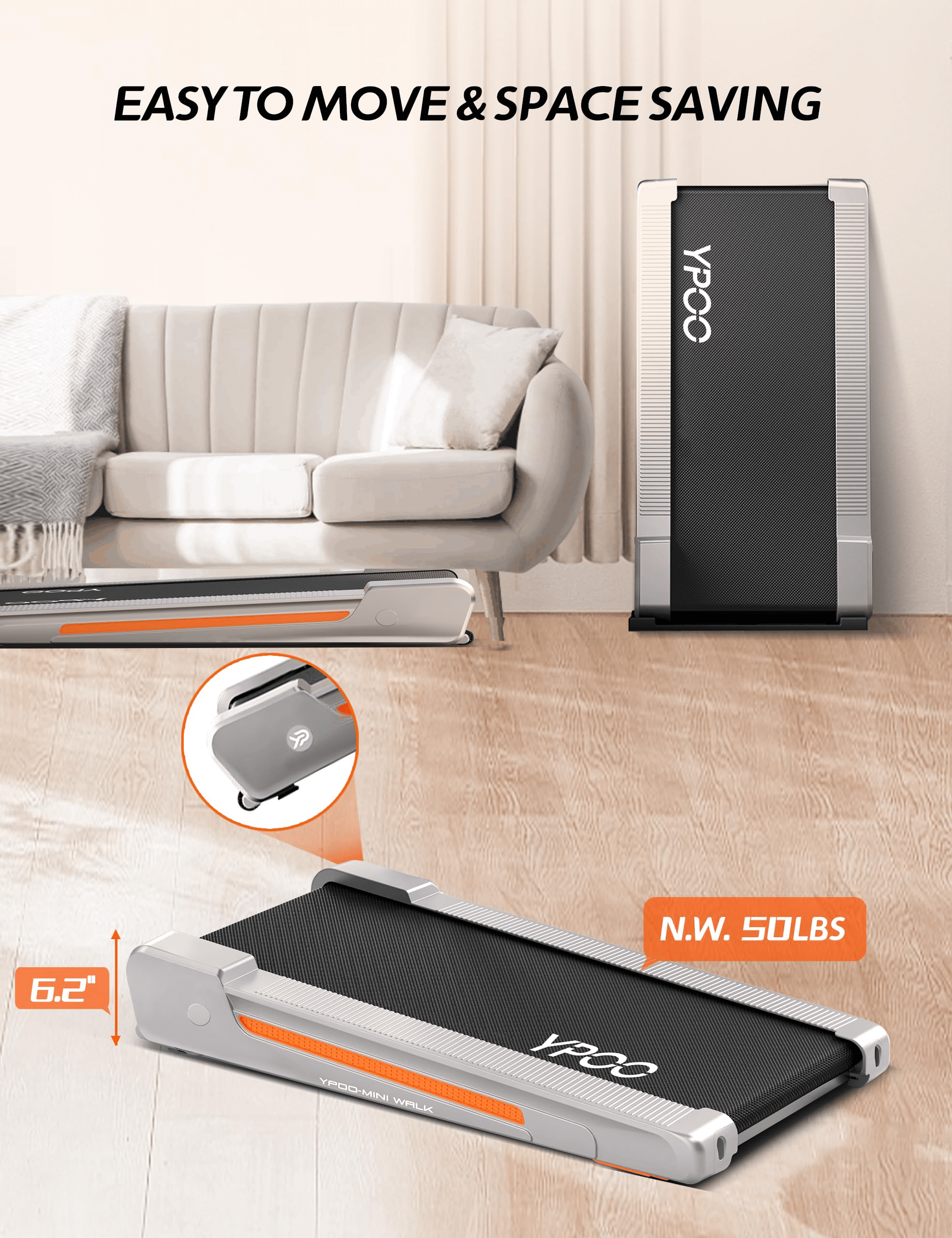 Space-Saving and Easy to Move: The YPOO Walking Pad Treadmill with Incline has a larger and wider treadmill belt area (16*40 inches), which is large enough for you to safely walk or run on when using this walking pad incline. The wlaking pad treadmill incline has two mobile wheels on the bottom for easy mobility and storage.